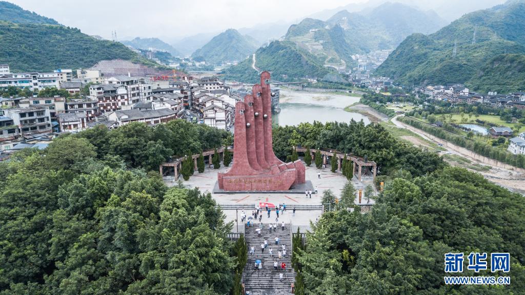 游客在仁懷市紅軍四渡赤水紀念園參觀(2019年7月5日攝,無人機照片)。新華社 陶亮 攝