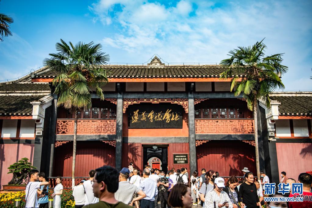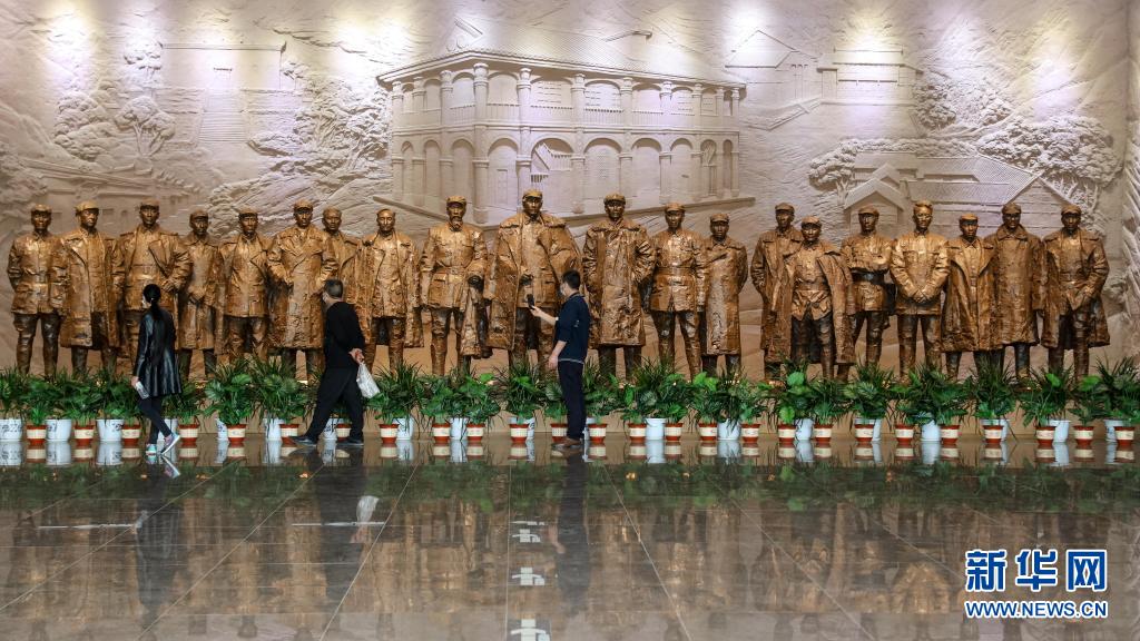 參觀者從鐘赤兵紀念廣場鐘赤兵雕像前經(jīng)過(4月20日攝)。新華社 歐東衢 攝