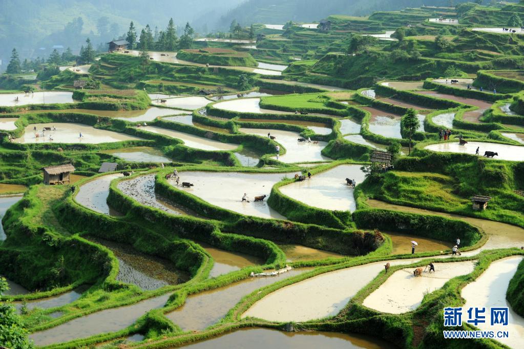 月亮山層層疊疊的梯田間,農(nóng)耕時節(jié)家家戶戶下田開犁,大地鋪開一幅古老農(nóng)耕文明畫卷,綠水青山成了農(nóng)民的金山銀山。