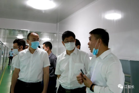 日興公司董事長、國家“萬人計劃”科技創(chuàng)新創(chuàng)業(yè)高層次人才、福建省A類人類、教授級高級工程師江銘福帶領(lǐng)產(chǎn)業(yè)領(lǐng)軍團(tuán)隊核心骨干熱情接待蘭文廳長等領(lǐng)導(dǎo),并向其匯報工作。