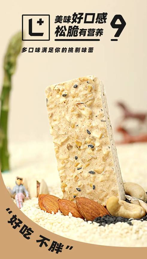 蛋白棒是以蛋白質(zhì)為主要營養(yǎng)元素的食物,相較于天然食物或蛋白粉來說,蛋白棒免沖泡,隨時隨地都能撕開享用,食用起來更方便。它不只適合健身愛好者,更是比較健康的代餐選擇,能保證人體所需的蛋白質(zhì)攝入量。