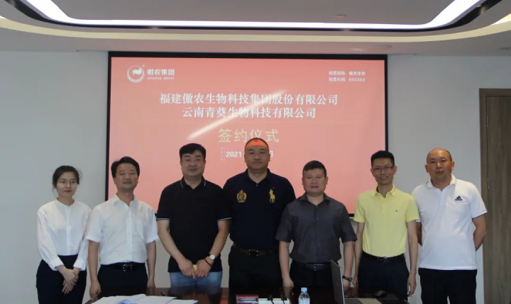 日前,我會理事單位福建傲農(nóng)生物科技集團(tuán)股份有限公司與云南青葵生物科技有限公司在廈門舉行戰(zhàn)略合作簽約儀式。傲農(nóng)集團(tuán)董事長吳有林、云南青葵董事長陳的作為各自公司代表正式簽署戰(zhàn)略合作協(xié)議。傲農(nóng)集團(tuán)董事黃華棟、集團(tuán)常務(wù)副總裁侯浩峰、云南傲農(nóng)總經(jīng)理?xiàng)钗?、集團(tuán)投資部總監(jiān)張玉琳參加了簽約儀式。