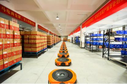 △智能物流機(jī)器人搬運(yùn)貨物,從“人找貨”升級(jí)為“貨到人”