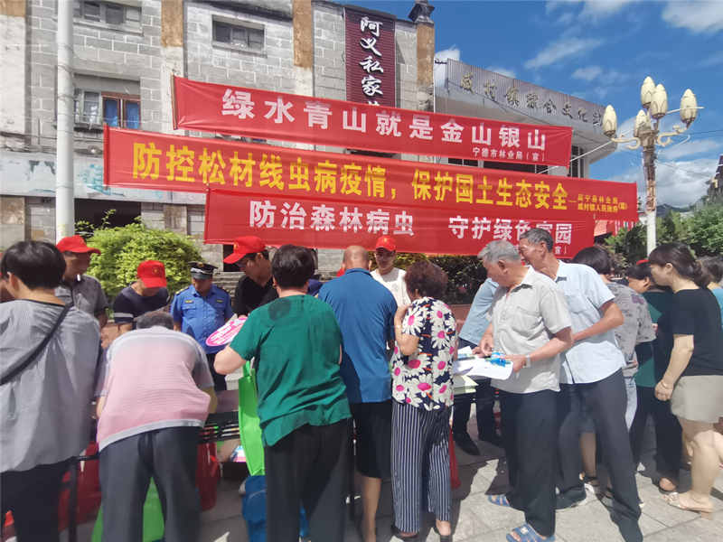 為增強(qiáng)社會(huì)公眾對(duì)林業(yè)有害生物的防控意識(shí),特別是提升廣大林農(nóng)主動(dòng)防范危險(xiǎn)性林業(yè)有害生物的自覺(jué)性。8月31日,寧德市林業(yè)局聯(lián)合周寧縣林業(yè)局、周寧縣咸村鎮(zhèn)政府在咸村開(kāi)展林業(yè)有害生物防治知識(shí)宣傳活動(dòng)。本次宣傳活動(dòng)中,工作人員通過(guò)懸掛條幅、立宣傳展板、分發(fā)宣傳材料等形式,現(xiàn)場(chǎng)講解松材線蟲病防控等林業(yè)有害生物防治知識(shí)及《福建省林業(yè)有害生物防治條例》等法律法規(guī),共分發(fā)《福建省林業(yè)有害生物防治條例》《松材線蟲病防控宣傳手冊(cè)》等宣傳資料400多份。