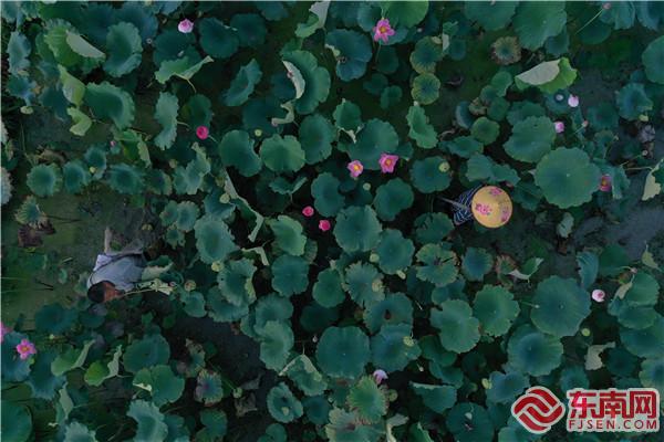 清晨,蓮農(nóng)采摘蓮篷 熊海棟 攝