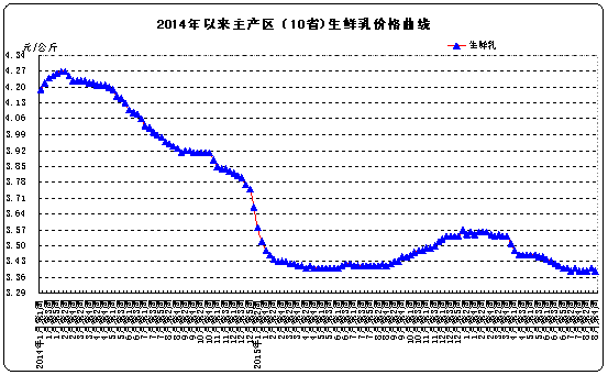 主產(chǎn)省生鮮乳 | 3.39 | 3.41 | 3.40 | -0.6 | -0.3 |