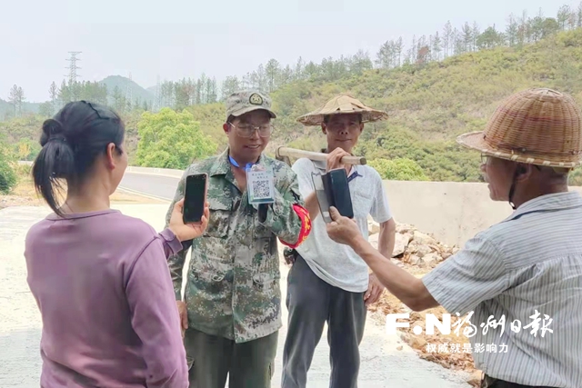 護(hù)林員攜帶流動(dòng)防火碼巡山,指導(dǎo)群眾掃碼