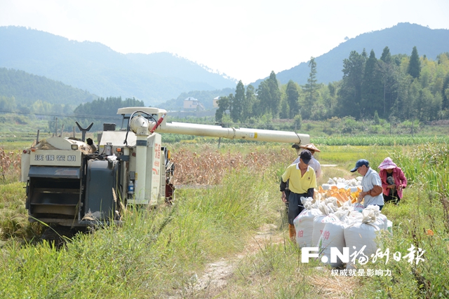 大湖鄉(xiāng)機(jī)械化收割(閩侯大湖鄉(xiāng)政府供圖)