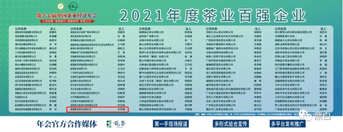 我會會員單位鼎白茶業(yè)有限公司應(yīng)邀參加本次年會,并榮獲“2021年度茶業(yè)百強(qiáng)企業(yè)”、“2021年度中國暢銷品牌”榮譽(yù)稱號。