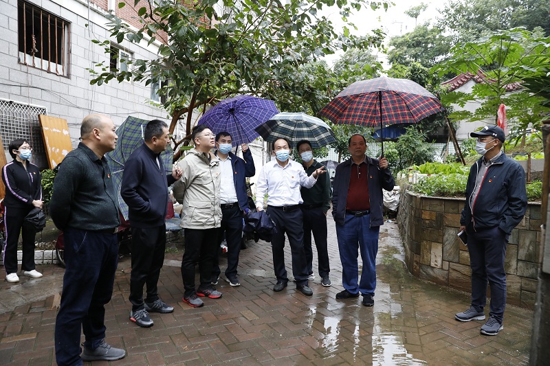 四、指導(dǎo)社區(qū)綠化。針對(duì)社區(qū)存在的綠化問(wèn)題,支部人員冒雨深入蘭庭六期社區(qū),實(shí)地查看公共綠地被居民私自侵占種菜的現(xiàn)場(chǎng),商討提出恢復(fù)綠化的建議措施。