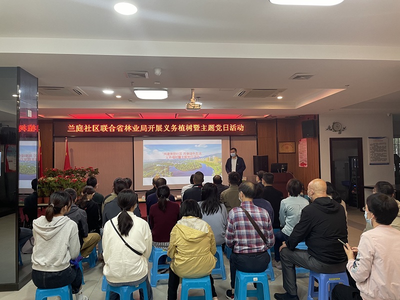 為推進(jìn)黨建和業(yè)務(wù)深度融合,深入開展“我為群眾辦實(shí)事”實(shí)踐活動(dòng),按照在職黨員到社區(qū)報(bào)到服務(wù)的要求,11月4日下午,省林業(yè)局造林處、綠化辦黨支部、省林規(guī)院城鄉(xiāng)綠化規(guī)劃室黨支部赴五鳳街道蘭庭社區(qū)開展“共建美麗社區(qū) 共享綠色生活”義務(wù)植樹暨主題黨日活動(dòng),為社區(qū)居民宣傳生態(tài)文明理念、講授科學(xué)綠化知識(shí),為社區(qū)綠化美化出謀劃策,倡導(dǎo)社區(qū)居民參與綠化美化家園,用實(shí)際行動(dòng)為社區(qū)增綠添彩,共建共享美好生活。劉亞圣副局長(zhǎng)以一名普通黨員身份參加支部活動(dòng)。來(lái)自蘭庭社區(qū)居民和志愿者30余人參加活動(dòng)。