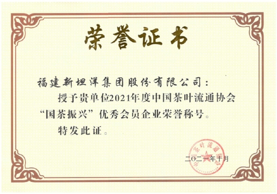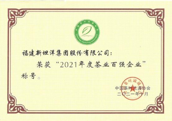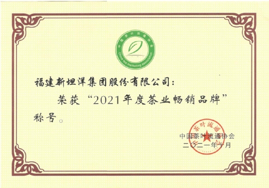 活動(dòng)現(xiàn)場(chǎng),中國(guó)茶葉流通協(xié)會(huì)發(fā)布了“2021中國(guó)茶葉行業(yè)年度調(diào)查結(jié)果”,福建新坦洋集團(tuán)股份有限公司榮獲“2021年度茶業(yè)百?gòu)?qiáng)企業(yè)、2021年茶業(yè)暢銷(xiāo)品牌和國(guó)茶振興優(yōu)秀會(huì)員稱號(hào)”等三項(xiàng)榮譽(yù)稱號(hào)。
