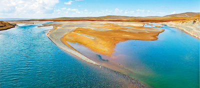黃河流出湖水豐盈的鄂陵湖