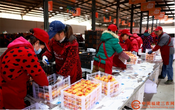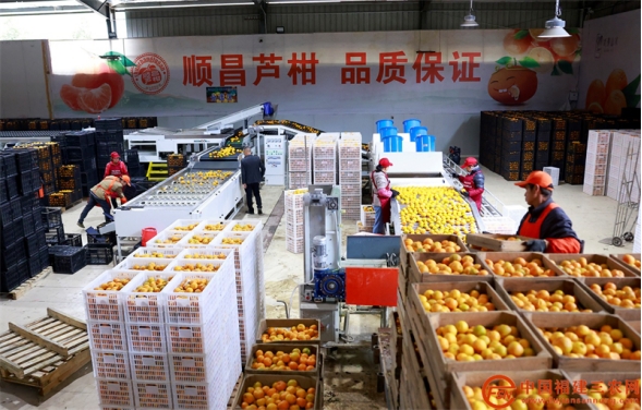 初冬,走進(jìn)福建省順昌縣洋墩鄉(xiāng)柑橘交易中心,一片繁忙的景象。只見車間里,果農(nóng)們把剛采摘來(lái)的一筐筐柑橘倒進(jìn)自動(dòng)果蔬機(jī)里,大小不一的柑橘很快被分離而出,隨即被包裝機(jī)打包入箱,編號(hào)待運(yùn)發(fā)貨。廣場(chǎng)外,來(lái)自全國(guó)的大型貨柜車來(lái)來(lái)往往,運(yùn)送著剛采摘包裝好的柑橘?!敖衲暧质且粋€(gè)豐收年,最高峰一天可出售十六個(gè)海柜的柑橘?!苯灰字行墓ぷ魅藛T說(shuō)道。