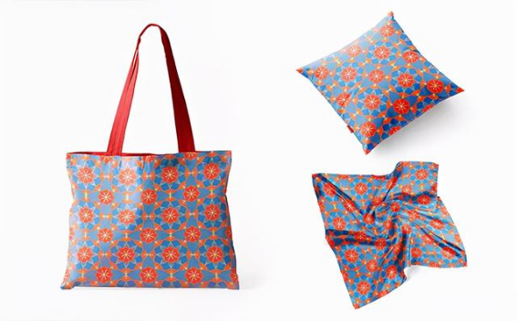 文鑫蓮業(yè)設計創(chuàng)作的“紅軍蓮·心連心”以紅旗紅和紅軍軍裝藍進行相互色彩搭配,紋樣藍色部分取自蓮花花瓣造型,紅色部分為四顆相連的紅心組成,中間為串起的圓形代表紅軍蓮(建蓮)及蓮蓬、花蕾。通過相同圖案的重復有序的排列組成一個紅色紋樣,寓意軍愛民,民擁軍,軍民心連心的紅色傳統(tǒng)。該紋樣適合應用于各種布質(zhì)、紙質(zhì)、皮質(zhì)等物品表面的裝飾。