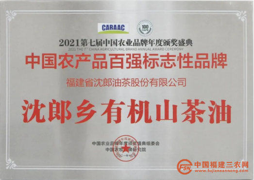 近日,2021第七屆中國(guó)農(nóng)業(yè)品牌年度頒獎(jiǎng)盛典在成都隆重舉行。我會(huì)會(huì)員單位沈郎鄉(xiāng)有機(jī)山茶油獲評(píng)“2021中國(guó)農(nóng)產(chǎn)品百?gòu)?qiáng)標(biāo)志性品牌”。