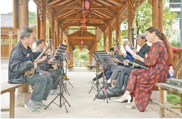 文化惠民,樂享精神生活。上青鄉(xiāng)有一支由中老年組成的“上青古樂”表演隊(duì),以及各村組建的“橋燈”表演隊(duì),通過演奏、表演為上青群眾精神生活增添了一抹亮色,2017年上青“橋燈”被上海大世界吉尼斯總部認(rèn)證為“中國最長的板橋龍燈”。此外,上青鄉(xiāng)還修繕了戲臺(tái),新建了有聲書屋、便民服務(wù)中心和文化廣場,為村民開展文化活動(dòng)提供了場地,營造了濃厚的文化氛圍。