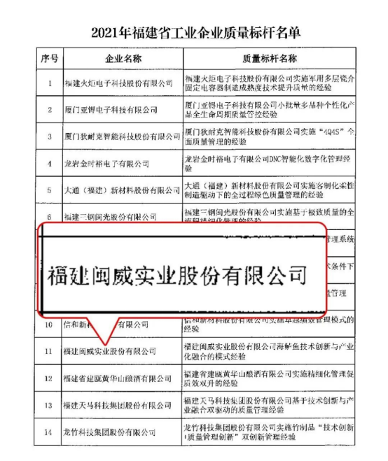 近日,福建省工業(yè)和信息化廳發(fā)布了2021年省級工業(yè)企業(yè)質(zhì)量標桿名單,我會理事單位福建閩威實業(yè)股份有限公司憑“海鱸魚技術(shù)創(chuàng)新與產(chǎn)業(yè)化融合的模式經(jīng)驗”獲此殊榮。