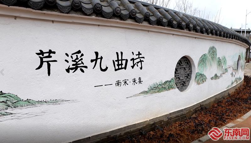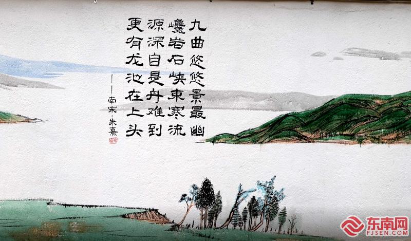 “芹溪流經(jīng)芹口村,朱熹曾經(jīng)作《芹溪九曲詩(shī)》,我們大力挖掘芹溪九曲文化,通過(guò)墻繪的形式把九曲詩(shī)的意境畫(huà)到墻上,讓村民和游客更直觀的感受《芹溪九曲詩(shī)》的魅力?!睂⒖阪?zhèn)芹口村黨支部第一書(shū)記陳筠說(shuō)。