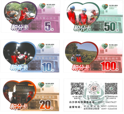 “你瞧,這是我們?yōu)樾铝_區(qū)白沙鎮(zhèn)白沙村的電力愛心超市量身打造的面值5分、10分、20分、50分和100分的積分卡。”國網(wǎng)龍巖市新羅區(qū)供電公司營銷部吳偉海副主任一邊滿懷欣喜地介紹電力愛心超市的籌建經(jīng)歷,一邊饒有興致地展示著手掌般大小的積分卡片。