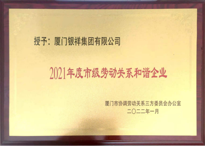 經(jīng)廈門市各區(qū)協(xié)調(diào)勞動(dòng)關(guān)系三方委員會(huì)、市三方四部門綜合審定,我會(huì)常務(wù)理事單位廈門銀祥集團(tuán)有限公司榮獲“2021年度市級(jí)勞動(dòng)關(guān)系和諧企業(yè)”稱號(hào)。