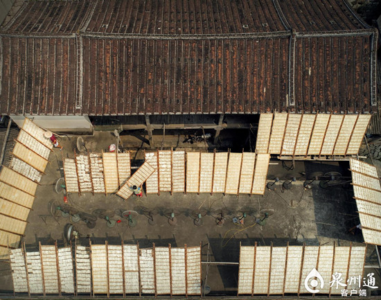 星羅棋布的米粉家庭作坊,晶瑩如絲的米粉在陽(yáng)光下閃閃發(fā)光。若是風(fēng)和日麗來(lái)到安溪湖頭鎮(zhèn)福壽村,尋??梢娺@般壯觀的場(chǎng)景。