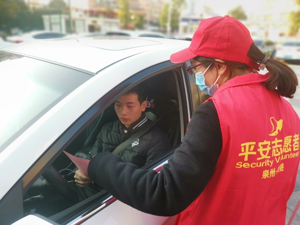 志愿者分發(fā)倡議書(泉港區(qū)委政法委供圖)