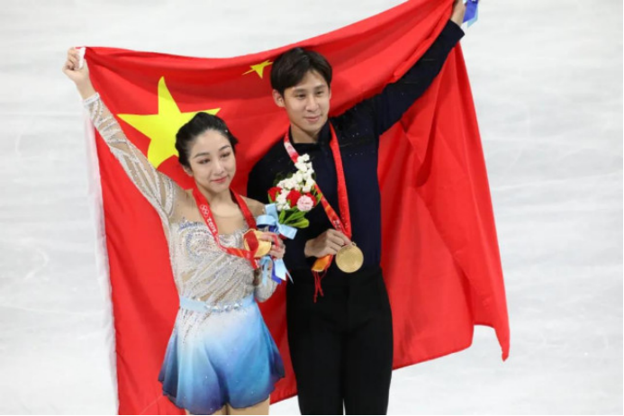 2月19日,我會(huì)副會(huì)長(zhǎng)單位盼盼食品代言人隋文靜、韓聰組合再一次打破世界紀(jì)錄,以總分239.88分的成績(jī),在冬奧會(huì)花樣滑冰雙人滑比賽中獲得冠軍。這也是中國(guó)代表團(tuán)在此次冬奧會(huì)中獲得的第9枚金牌。
