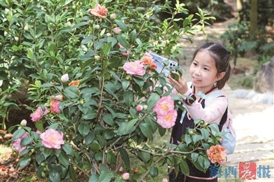 市民來(lái)到山茶園賞花打卡。海西晨報(bào) 唐光峰 攝
