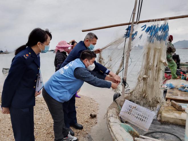 市場監(jiān)督管理部門執(zhí)法人員對剛靠岸的漁船進行檢查。廈門市市場監(jiān)督管理局供圖