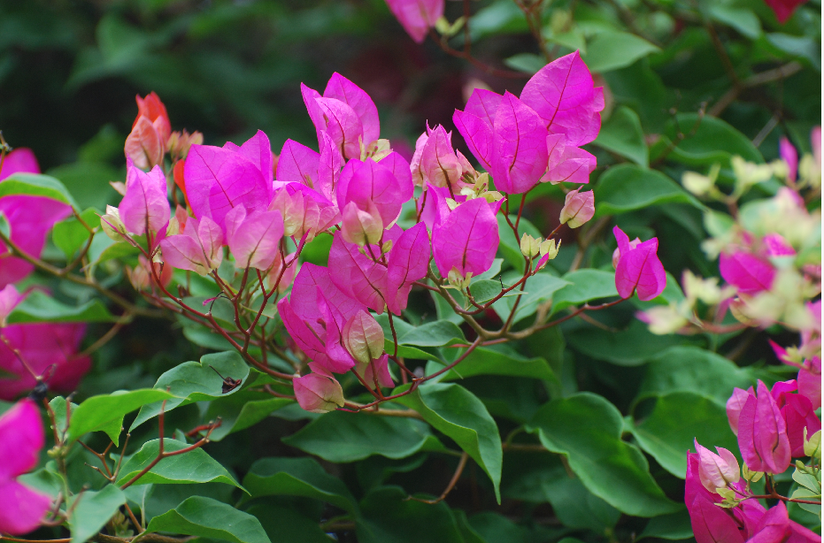 科研成果豐碩。廈門市園林植物園早在上世紀60年代就開始三角梅系統(tǒng)引種研究,建有全國首個“國家三角梅種質資源庫”,收集保存了三角梅種質資源6個種群400余份,選育出了首個具有自主知識產權的三角梅新品種‘中閩1號’,2018年獲得國家植物新品種權。2021年以來,福建大千園林有限公司、廈門萬銀環(huán)境科技有限公司建設的三角梅種質資源庫先后被省級花卉主管部門認定命名為省級花卉種質資源庫,廈門木林深處苗木有限公司等單位選育的三角梅‘化蝶’等 5個新品種也獲得了國家植物新品種權,有力提升了我省三角梅產業(yè)的核心競爭力。