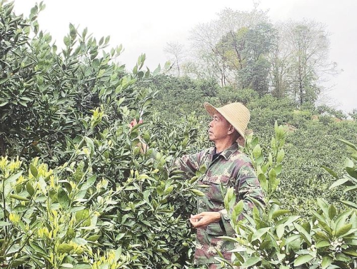 “今年柑桔樹的花芽比較飽滿,你看這三個(gè)一堆、兩個(gè)一堆的,看著很喜人?!卑殡S著山谷的鳥鳴聲,余安增在柑桔地里忙活。