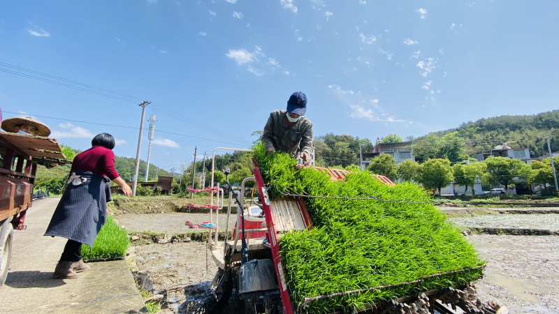 糧食種植大戶陳安娣說(shuō):“我們?cè)诔浞掷棉r(nóng)村閑置勞動(dòng)力的同時(shí),利用現(xiàn)代農(nóng)機(jī),加快種植速度,確保清明節(jié)之前把160多畝的糧田種植完成?!?月29日,在金砂鎮(zhèn)赤竹村連片100多畝的農(nóng)田里,伴隨著機(jī)器的轟鳴聲聲,打地機(jī)翻騰起沉睡了一個(gè)冬天的泥土,農(nóng)民們?nèi)宄扇簱屪マr(nóng)時(shí)開(kāi)展春耕生產(chǎn),插秧機(jī)在田間來(lái)回穿梭,種下一棵棵希望的秧苗,為豐產(chǎn)豐收開(kāi)好頭、起好步。