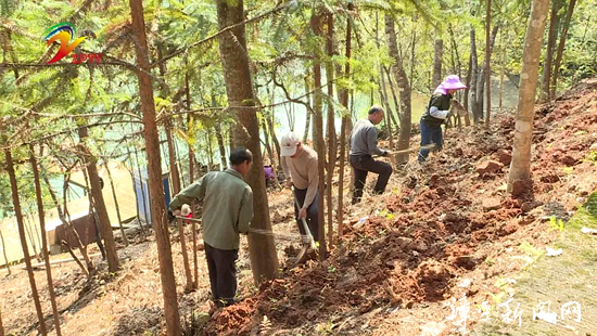 日前,在九鵬溪景區(qū)李天華林場,工人們正在翻土、挖槽、搶抓林時(shí)種植白芍,忙得不亦樂乎。