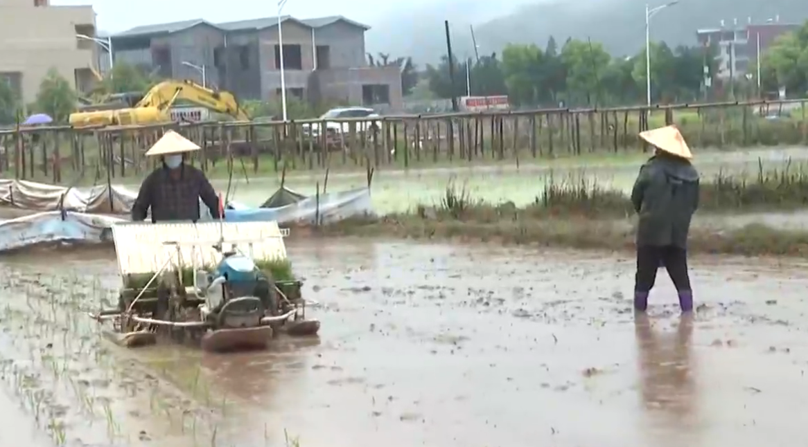 永春縣水稻種植大戶蘇寶樹與妻子進行春耕生產(chǎn)(來源:福建新聞頻道報道截圖)