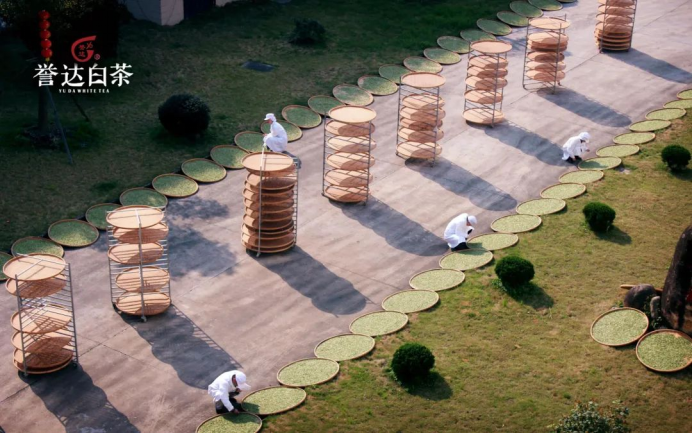 來到譽達白茶的茶廠,制茶師正根據(jù)天氣以及白茶的情況進行萎凋選擇,無論是室內(nèi)自然萎凋還是加溫萎凋,都是最大限度地保持了白茶的自然毫香。之后的烘干、晾曬等過程同樣由經(jīng)驗老道的制茶師從中進行把控與挑選,只為奉出一杯最鮮美的春茶。