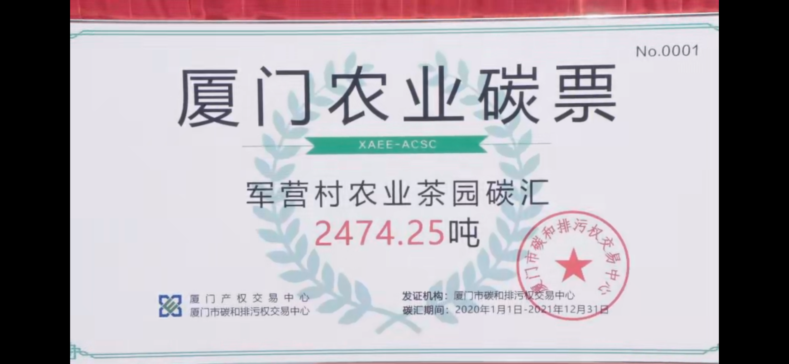 在現(xiàn)場,同安區(qū)的軍營村和白交祠村的村民領(lǐng)到了首批農(nóng)業(yè)碳票。據(jù)了解,同安區(qū)是廈門的農(nóng)業(yè)大區(qū),農(nóng)業(yè)資源豐富,僅白交祠村、軍營村就擁有生態(tài)茶園7755畝、生態(tài)公益林7600畝,兩地生態(tài)農(nóng)業(yè)茶園2年期碳匯為3357噸。廈門一食品企業(yè)購買了該筆碳匯,用它來抵消日常生產(chǎn)經(jīng)營活動中所產(chǎn)生的部分碳排放。