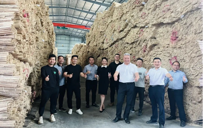在和其昌總裁俞艷的帶領(lǐng)下,調(diào)研團一行參觀了集裝箱底板及家居板等生產(chǎn)線,就竹開發(fā)、竹應(yīng)用進行了更深層次的探討。