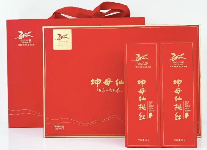 一春一采,以養(yǎng)為主,去量培質(zhì),讓芽葉充分吸收母樹的營養(yǎng),使得葉片葉脈肥厚,內(nèi)質(zhì)豐富,有韌勁。茶鮮葉采摘于每年4月上旬頭采,采摘標準為一芽三四葉,并經(jīng)白馬山茶葉技術(shù)研究所制茶師獨具匠心,在傳統(tǒng)紅茶工藝的基礎(chǔ)上,創(chuàng)新鮮葉萎凋搖青工藝,成品茶有明顯的蜜桃香,使坤母仙桃紅更大限度保持氨基酸,茶多酚以及多種維生素的有效成分,有潤肺、保肝、養(yǎng)胃、養(yǎng)心、美容、抗衰老、增強人體免疫力等功效,同時公司自主研發(fā)的制作工藝也獲得國家發(fā)明專利——果香型紅茶的加工工藝。