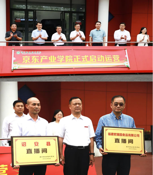 近日,漳州職業(yè)技術(shù)學(xué)院京東產(chǎn)業(yè)學(xué)院啟動運營,我會會員單位福建歐瑞園食品有限公司同京東產(chǎn)業(yè)學(xué)院也正式展開合作。漳州職業(yè)技術(shù)學(xué)院黨委書記康溪順、校長林培榕、漳州市農(nóng)業(yè)農(nóng)村局副局長林偉華、江蘇京東黨委書記汪世龍等相關(guān)負(fù)責(zé)人舉行推桿啟動儀式,學(xué)院黨委書記康溪順向歐瑞園集團(tuán)董事長黃屹授牌。