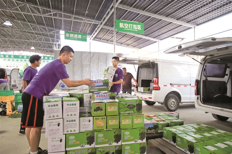 同時(shí),現(xiàn)代物流讓福安的特色農(nóng)產(chǎn)品如虎添翼,銷售半徑不斷擴(kuò)展。目前,福安市已建立3個(gè)鄉(xiāng)鎮(zhèn)級(jí)、8個(gè)村級(jí)葡萄專業(yè)交易市場,擁有23個(gè)標(biāo)準(zhǔn)化分級(jí)分揀包裝點(diǎn),葡萄包裝能力達(dá)到每天12萬箱,形成了“村物流點(diǎn)收集+鄉(xiāng)鎮(zhèn)匯總+干線物流+城市落地配送”福安鮮果物流模式,實(shí)現(xiàn)省內(nèi)當(dāng)日達(dá)、周邊省份次日達(dá),讓葡萄、水蜜桃、臍橙等鮮果從“枝頭”直抵“舌頭”。