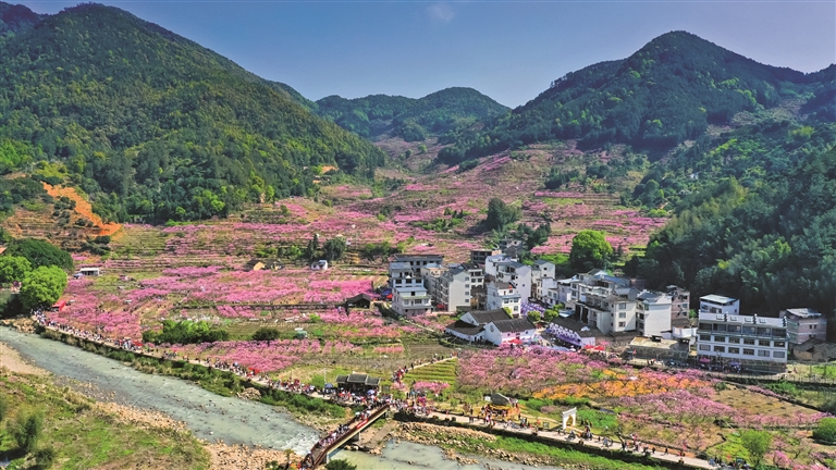 農(nóng)歷“三月三”是畬族重要的傳統(tǒng)節(jié)日,此時(shí)正值福安西部畬區(qū)萬畝桃花盛開時(shí)節(jié),一年一度的桃花節(jié)畬歌會(huì),吸引了數(shù)十萬各地游客慕名到此觀賞桃花、聆聽畬歌、品嘗美食,“桃”醉在濃郁的畬家風(fēng)情之中。