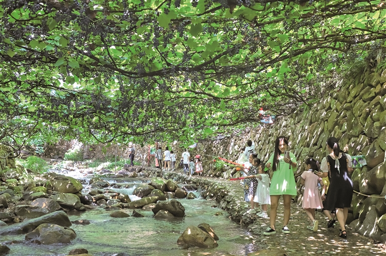 游客在溪塔葡萄溝戲水消夏