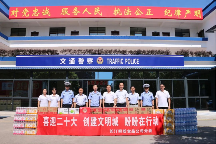 長汀縣政協(xié)副主席俞永洪,縣文明辦主任康惠華及盼盼公司負責人等一行,前往縣城市管理局、交警大隊,為創(chuàng)城一線工作人員送去盼盼礦泉水、飲料、盼盼FD凍干面、面包等慰問品。同時,向一級工作人員致以崇高的敬意,感謝他們對創(chuàng)建文明城市的辛勤付出。