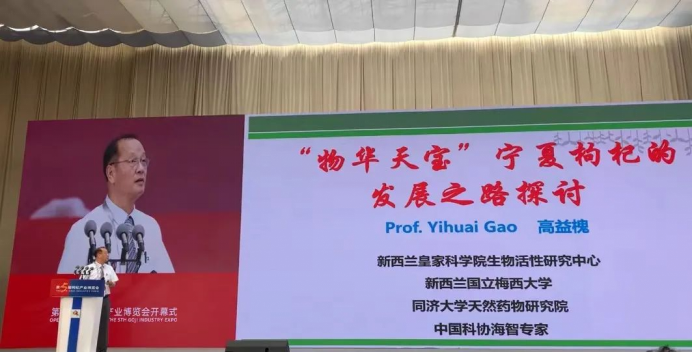 6月22日,寧夏第五屆枸杞產(chǎn)業(yè)博覽會(huì)在寧夏中寧縣開(kāi)幕,來(lái)自全國(guó)的專家和企業(yè)通過(guò)“線上+線下”的形式相聚“中國(guó)枸杞之鄉(xiāng)”,共商寧夏枸杞產(chǎn)業(yè)高質(zhì)量發(fā)展大計(jì)。中國(guó)科協(xié)海智專家、新西蘭皇家科學(xué)院生物活性研究中心首席科學(xué)家、新西蘭天然藥物研究所所長(zhǎng)、我會(huì)常務(wù)理事單位安發(fā)(福建)生物科技有限公司高益槐教授應(yīng)邀出席博覽會(huì)活動(dòng)并做主旨演講。