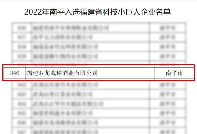 根據(jù)2022年福建省科技小巨人企業(yè)遴選和認定標準,入選企業(yè)需在企業(yè)營收、研發(fā)投入、知識產(chǎn)權(quán)、社會信用等綜合維度表現(xiàn)優(yōu)異,且具有較強創(chuàng)新能力和發(fā)展?jié)摿Γ谛袠I(yè)內(nèi)有代表性和領(lǐng)頭示范作用。此次獲得“福建省科技小巨人企業(yè)”榮譽,既是對雙龍戲珠酒業(yè)生產(chǎn)和創(chuàng)新實力的認可,也是對公司發(fā)展的鼓勵與鞭策。