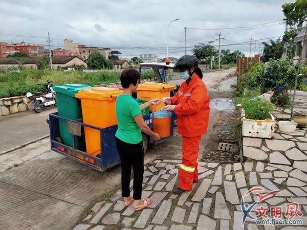 村民主動參與垃圾分類。(同安區(qū)市政園林局供圖)