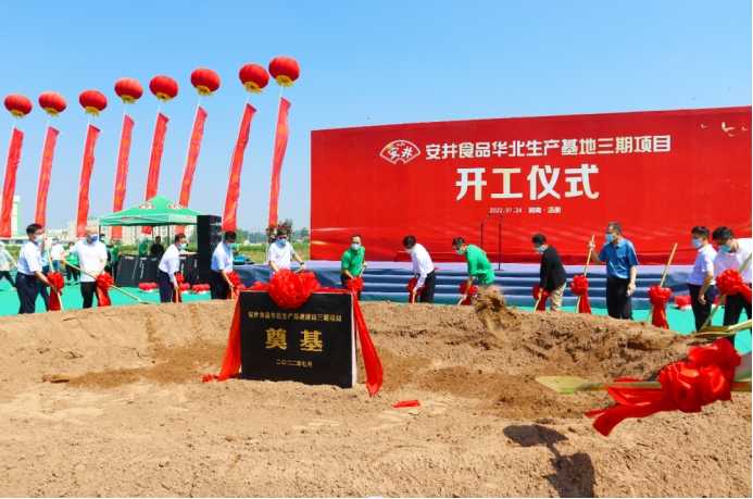 隨后,安陽市委書記袁家健、安井集團(tuán)董事長劉鳴鳴等領(lǐng)導(dǎo)共執(zhí)金鍬,一起為安井食品集團(tuán)華北生產(chǎn)基地三期項目培土奠基。