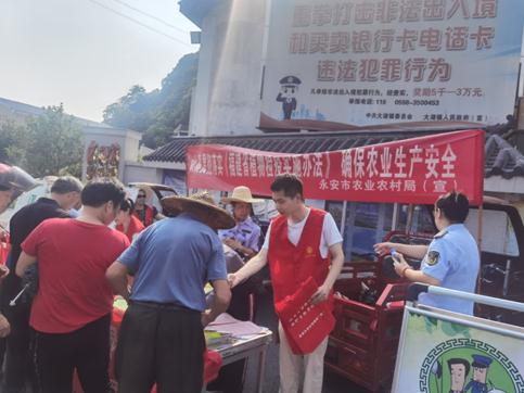 為增強(qiáng)公眾對植物檢疫及生物安全的意識,7月28日,三明永安市農(nóng)業(yè)農(nóng)村局在大湖鎮(zhèn)開展宣傳植物檢疫法律法規(guī)。現(xiàn)場向村民發(fā)放柑橘黃龍病、紅火蟻等植物檢疫病蟲的識別及傳播擴(kuò)散途徑、《福建省植物檢疫實施辦法》手冊300余份,解答村民咨詢的有關(guān)檢疫病蟲問題。