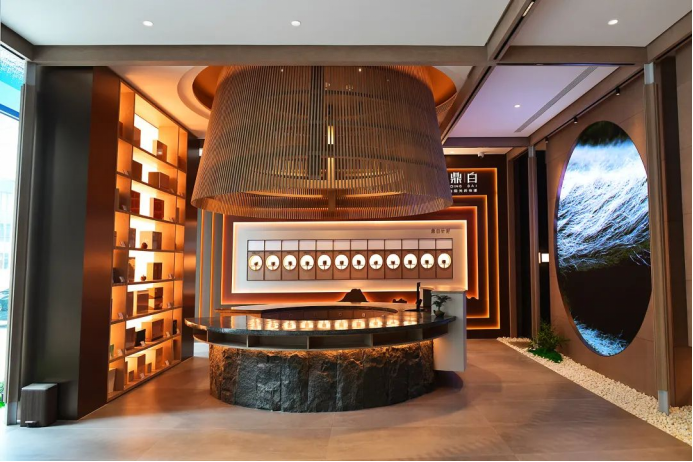 鼎白北京國(guó)貿(mào)體驗(yàn)館將這一想法具象化,在裝修風(fēng)格上實(shí)現(xiàn)全新突破,以新中式為思路,運(yùn)用現(xiàn)代的空間語(yǔ)言和表達(dá)方式,呈現(xiàn)傳統(tǒng)與現(xiàn)代相融合的茶文化空間。